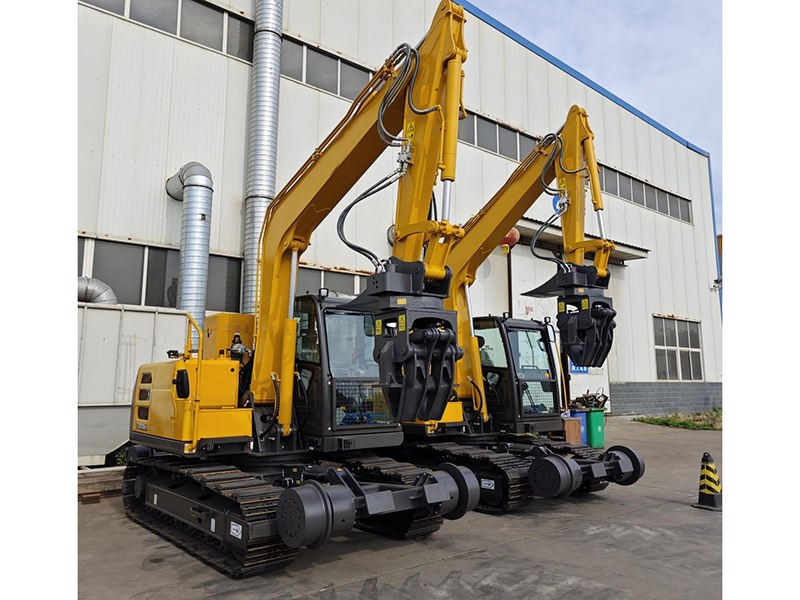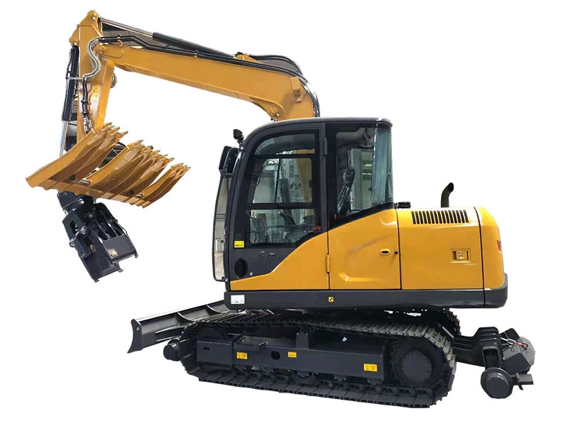 铁路施工用具----公铁两用挖掘机铁路轮系升降及驱动装置、枕木夹具。挖掘机枕木夹具是我公司新设计生产的铁路维护属具工作装置之一,它是可以通过快换连接器安装到挖掘机上的前端工作装置。适用于6—13吨挖掘机使用。同时我厂改装公铁两用挖掘机,即在铁路轨道上行走的挖掘机底部装置,在铁路维护方面更加便捷。